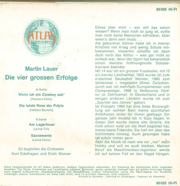 Vinyl / Martin Lauer - Die Vier Grossen Erfolge