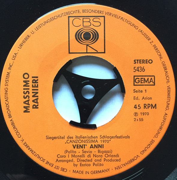 Vinyl / Massimo Ranieri - Vent' Anni / Sogno D'Amore