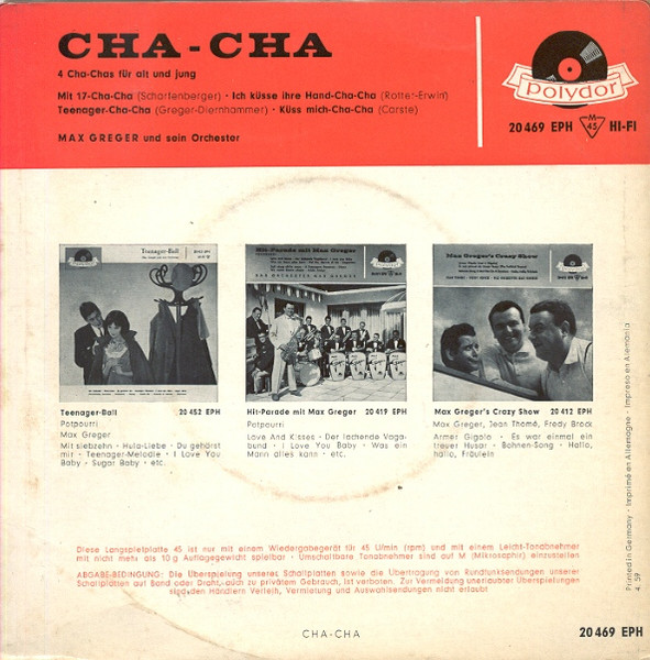 Vinyl / Max Greger Und Sein Orchester - Cha - Cha (4 Cha- Chas Für Alt Und Jung)