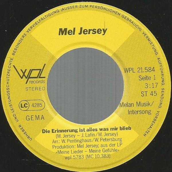 Vinyl / Mel Jersey - Die Erinnerung Ist Alles Was Mir Blieb