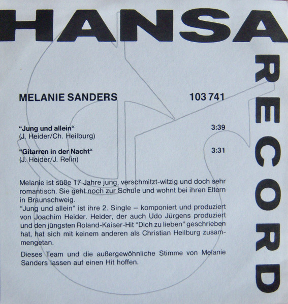 Vinyl / Melanie Sanders - Jung Und Allein