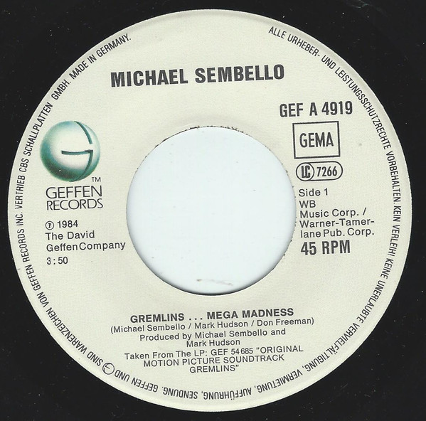 Vinyl / Michael Sembello / Jerry Goldsmith - Gremlins...Mega Madness / The Gremlin Rag