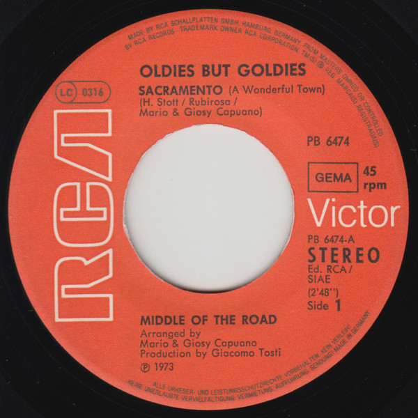 Vinyl / Middle Of The Road - Sacramento / Samson And Delilah