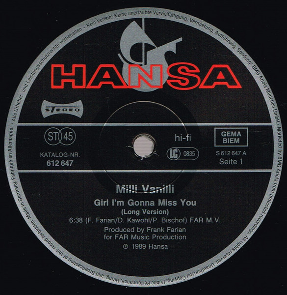 Vinyl / Milli Vanilli - Girl I'm Gonna Miss You