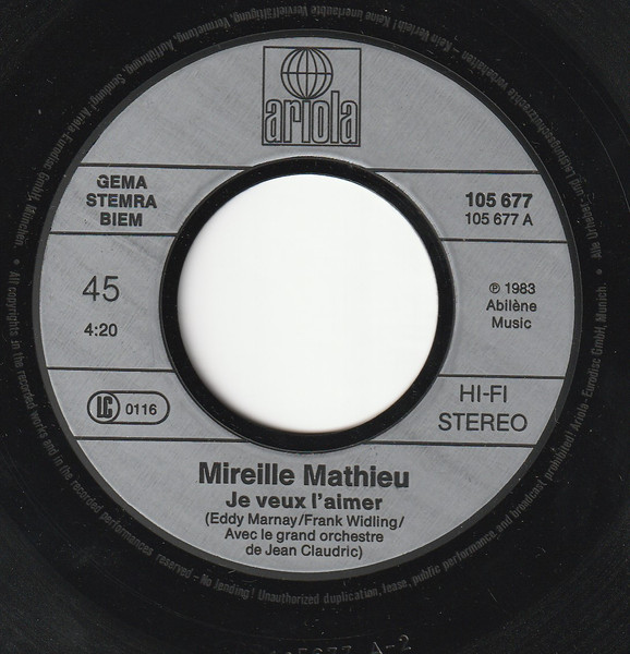 Label: Ariola - Cat#: 105 677