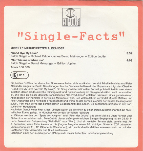 Vinyl / Mireille Mathieu & Peter Alexander - Good-Bye My Love (Verzeih My Love)