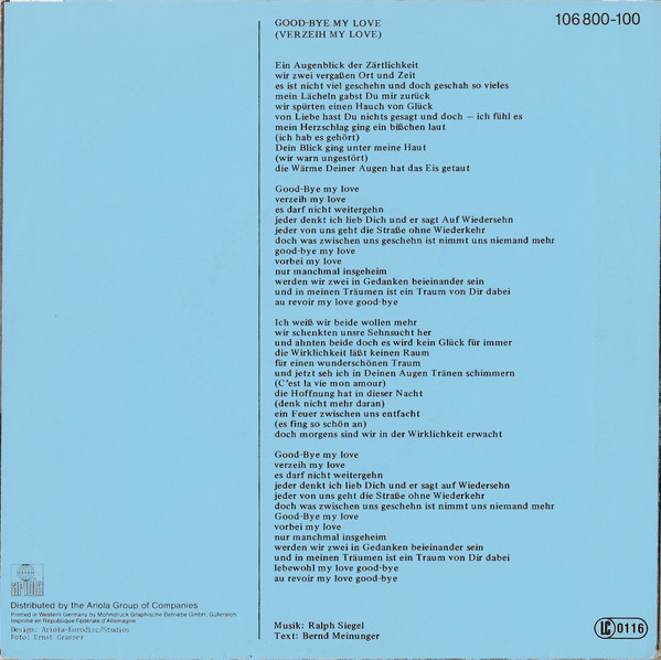 Label: Ariola - Cat#: 106 800