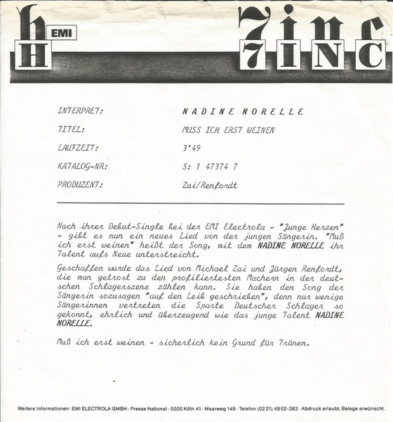 Vinyl / Nadine Norelle* - Muss Ich Erst Weinen?