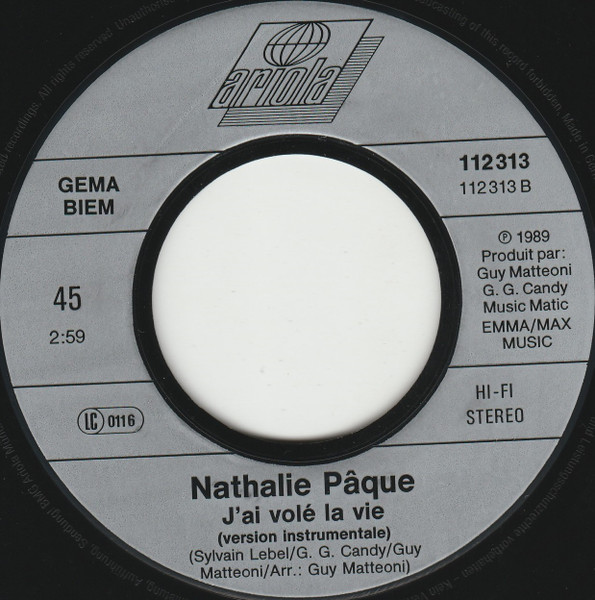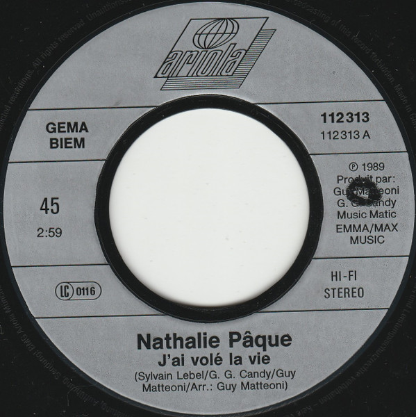 Vinyl / Nathalie Pâque - J'ai Volé La Vie