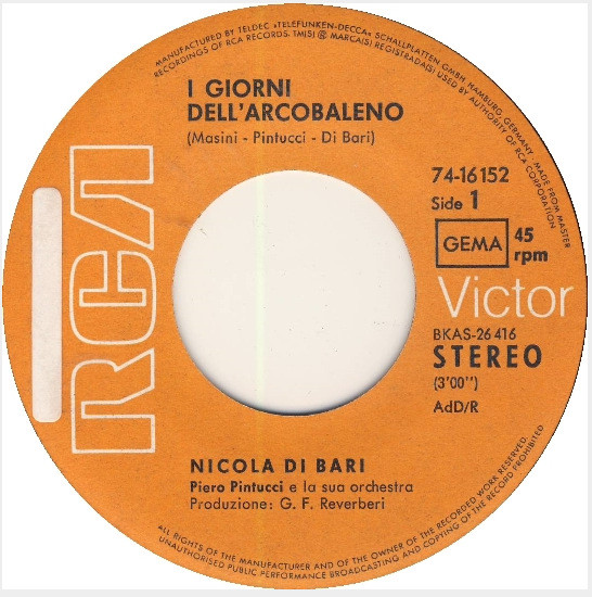 Vinyl / Nicola Di Bari - I Giorni Dell'Arcobaleno