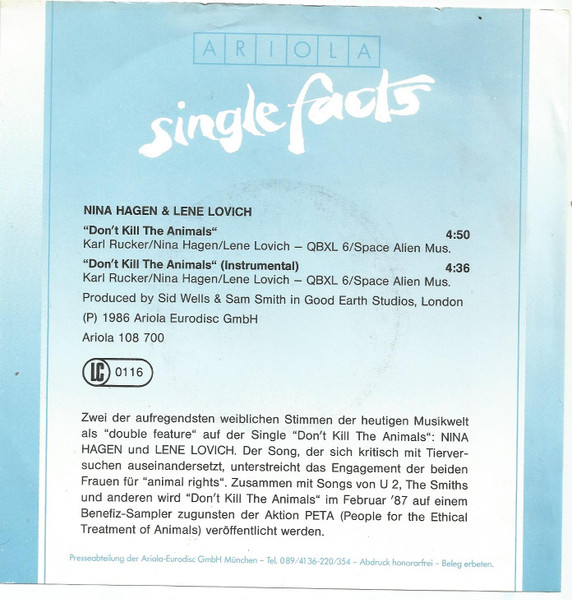 Vinyl / Nina Hagen / Lene Lovich - Don't Kill The Animals