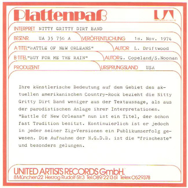 Vinyl / Nitty Gritty Dirt Band - Battle Of New Orleans