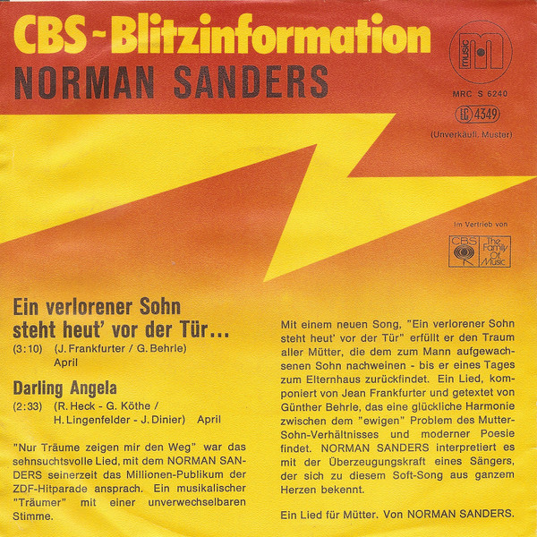 Vinyl / Norman Sanders (2) - Ein Verlorener Sohn Steht Heut' Vor Der Tür...