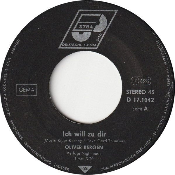 Vinyl / Oliver Bergen - Ich Will Zu Dir / Ich Muß Dich Fühlen