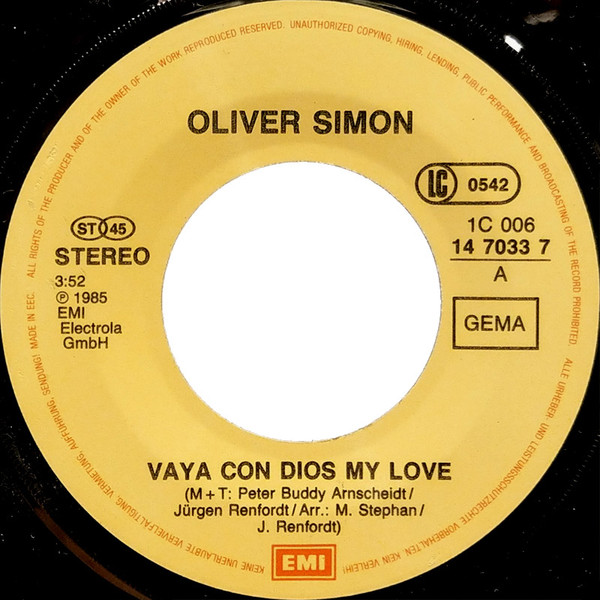 Vinyl / Oliver Simon - Vaya Con Dios My Love (Frei Wie Ein Adler Im Wind)