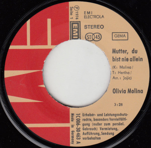 Vinyl / Olivia Molina - Mutter, Du Bist Nie Allein / Alles Liebe Zum Geburtstag