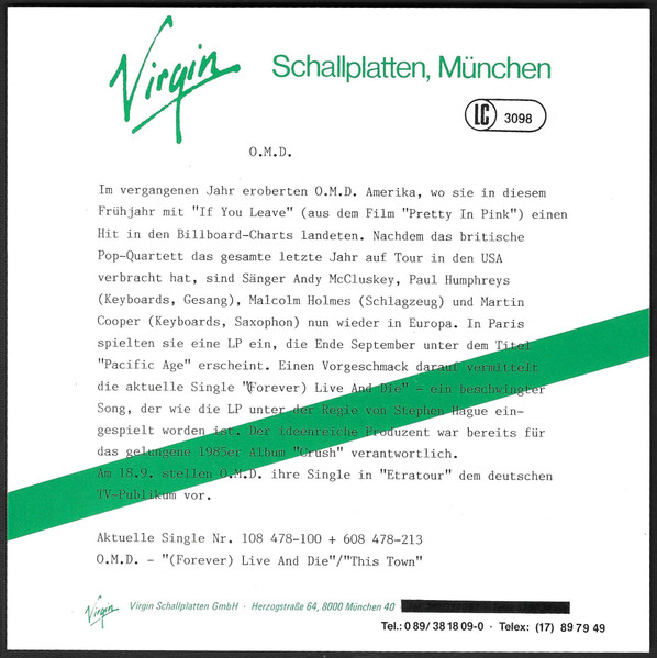 Vinyl / Orchestral Manœuvres In The Dark* - (Forever) Live And Die