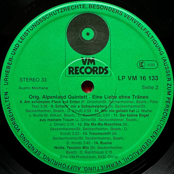Vinyl / Orig. Alpenland Quintett - Eine Liebe Ohne Tränen ...