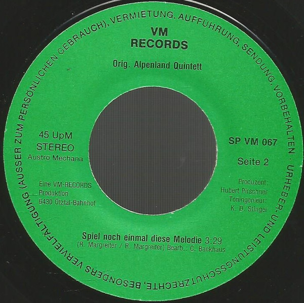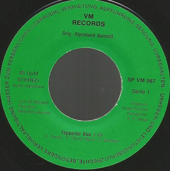 Vinyl / Orig. Alpenland Quintett - Tepperter Bua / Spiel Noch Einmal Diese Melodie