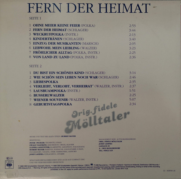 Vinyl / Orig. Fidele Mölltaler* - Fern Der Heimat