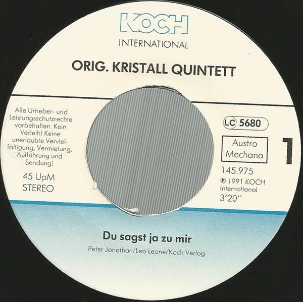 Vinyl / Orig. Kristall Quintett* - Du Sagst Ja Zu Mir