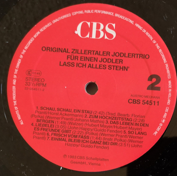 Vinyl / Orig. Zillertaler Jodlertrio* - Für Einen Jodler Lass Ich Alles Stehn'