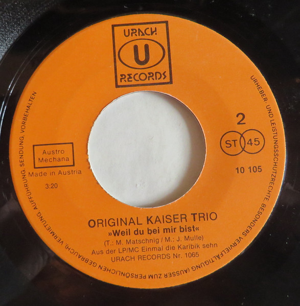 Vinyl / Original Kaiser Trio - Kommt Ein Draken 1.2.3. / Weil Du Bei Mir Bist