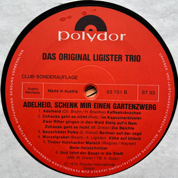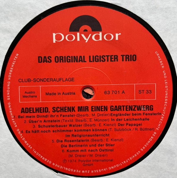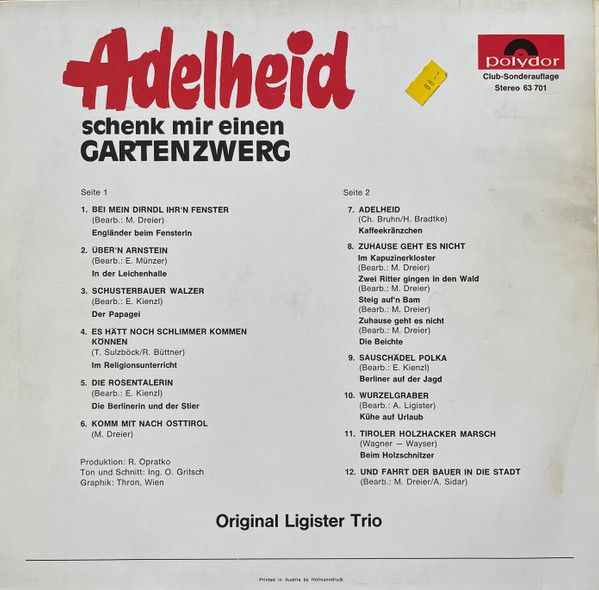 Vinyl / Original Ligister Trio - Adelheid Schenk Mir Einen Gartenzwerg