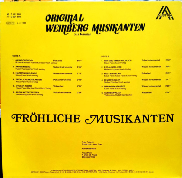 Vinyl / Original Weinberg Musikanten Aus Kärnten* - Fröhliche Musikanten