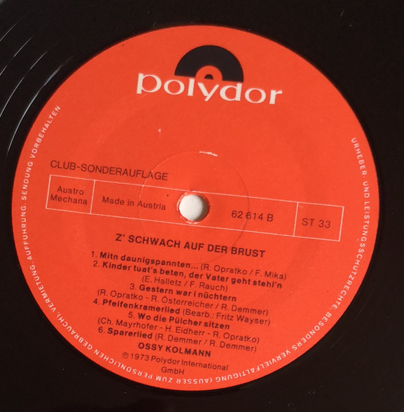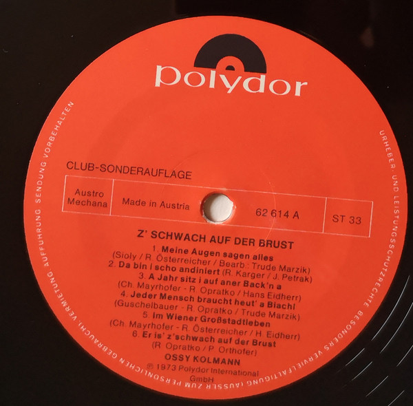 Vinyl / Ossy Kolmann - Er Is' Z'schwach Auf Der Brust