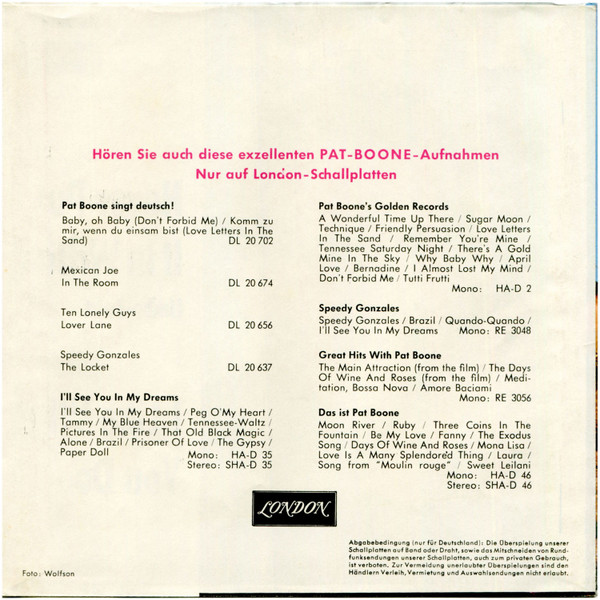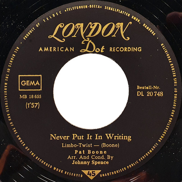 Vinyl / Pat Boone - Never Put It In Writing / I Like What You Do