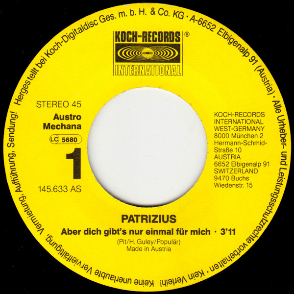 Vinyl / Patrizius - Aber Dich Gibt´s Nur Einmal Für Mich