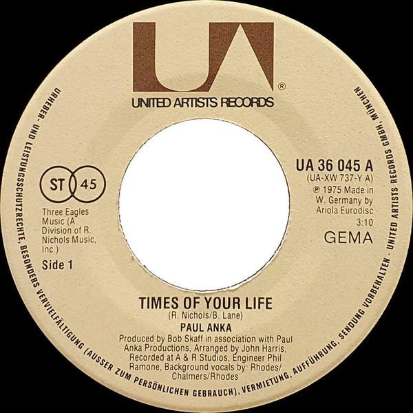 Vinyl / Paul Anka - Times Of Your Life