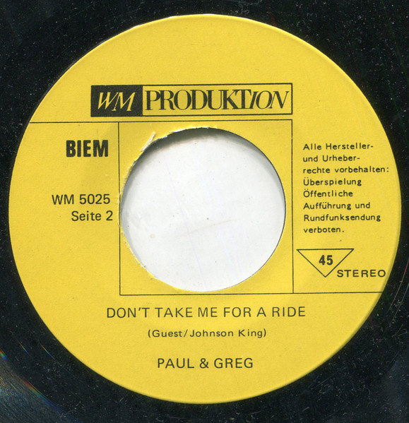 Vinyl / Paul & Greg - Portland Town / Don't Take Me For A Ride