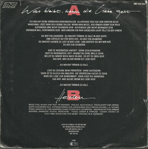 Vinyl / Pe Werner - Was Bleibt, Wenn Die Liebe Geht (Du Bist Ein Zauberer)