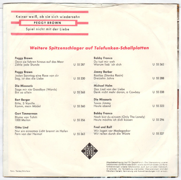 Vinyl / Peggy Brown - Keiner Weiß Ob Sie Sich Wiedersehn