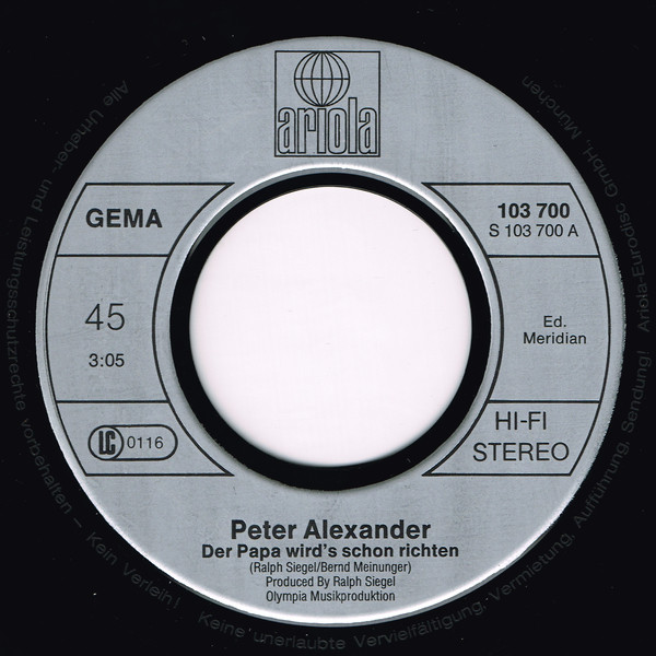 Vinyl / Peter Alexander - Der Papa Wird's Schon Richten / Und Jeden Samstag Liebe