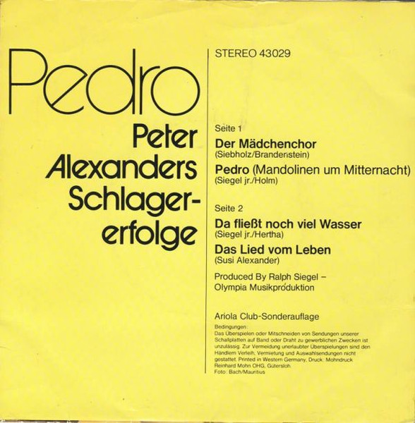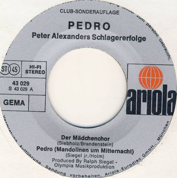 Vinyl / Peter Alexander - Pedro (Peter Alexanders Schlagererfolge)