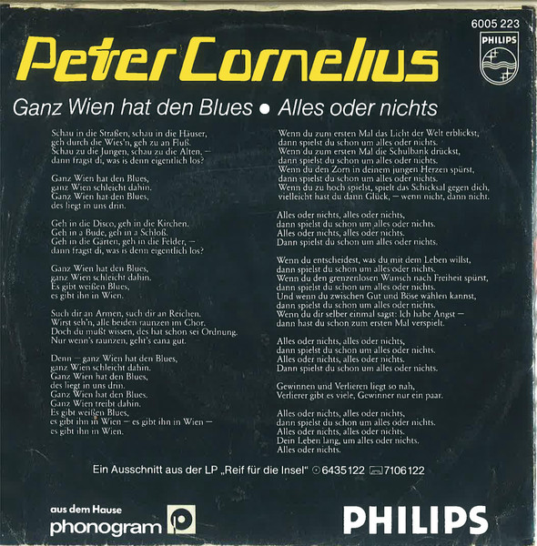 Vinyl / Peter Cornelius - Ganz Wien Hat Den Blues