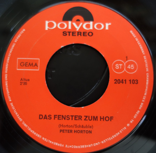 Vinyl / Peter Horton - Den Schlüssel Hast Du / Das Fenster Zum Hof