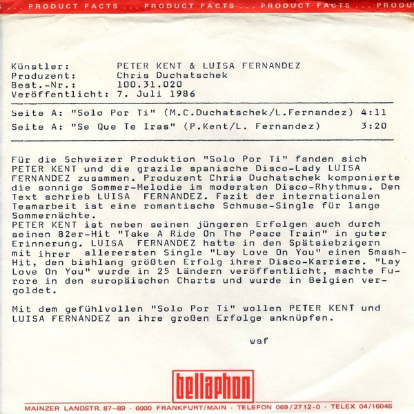 Vinyl / Peter Kent & Luisa Fernandez* - Solo Por Ti
