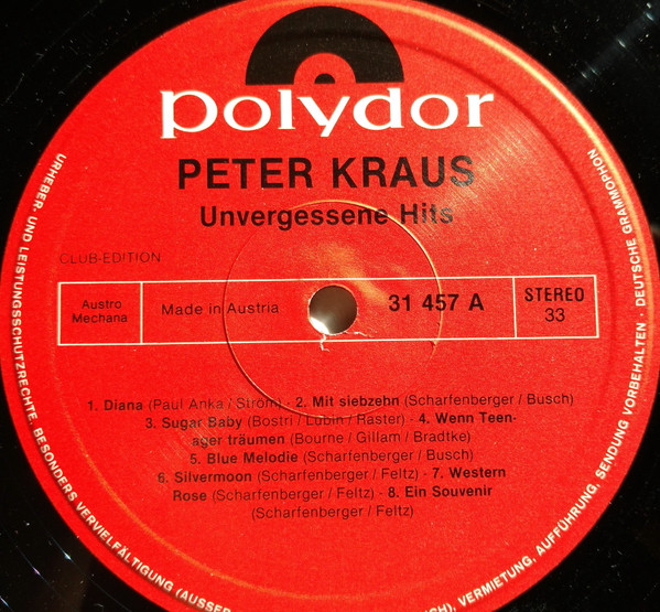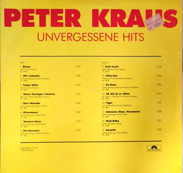 Vinyl / Peter Kraus - Unvergessene Hits