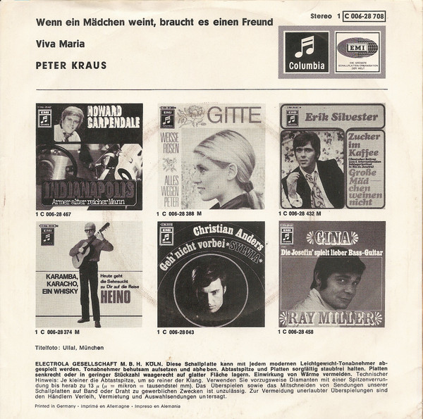 Vinyl / Peter Kraus - Wenn Ein Mädchen Weint, Braucht Es Einen Freund / Viva Maria