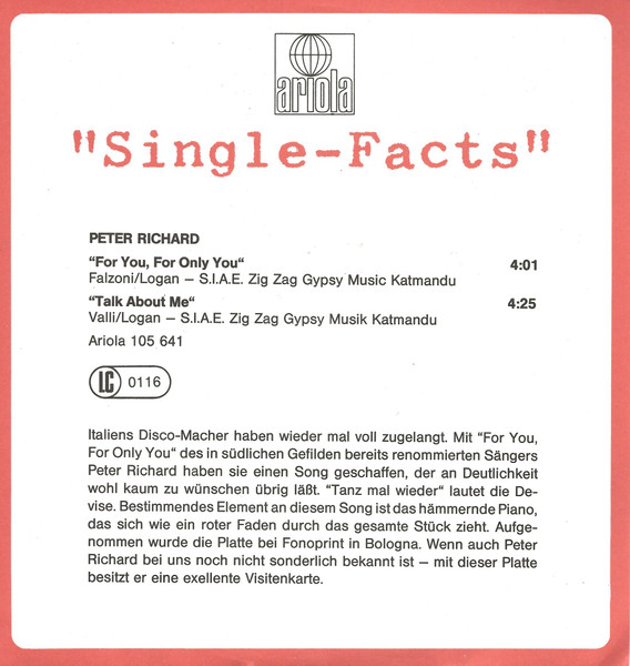 Label: Ariola - Cat#: 105 641