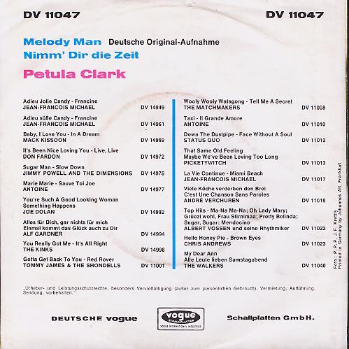 Vinyl / Petula Clark - Melody Man / Nimm Dir Die Zeit