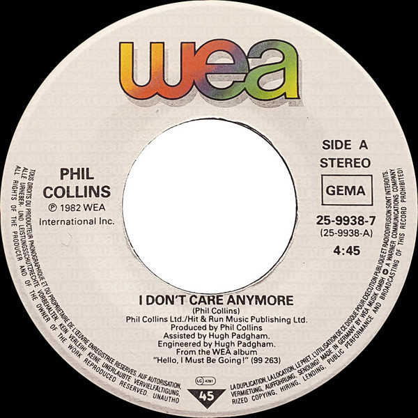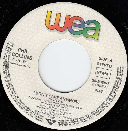 Vinyl / Phil Collins - I Don't Care Anymore