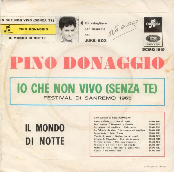 Vinyl / Pino Donaggio - Io Che Non Vivo (Senza Te)