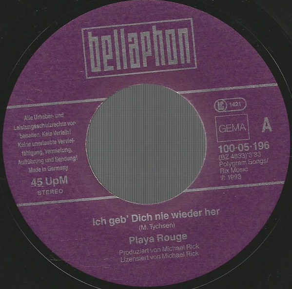 Vinyl / Playa Rouge - Ich Geb' Dich Nie Wieder Her