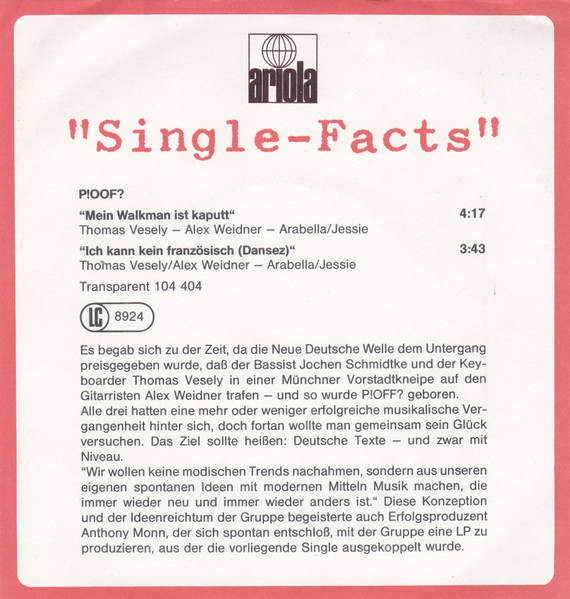 Vinyl / P!OFF? - Mein Walkman Ist Kaputt & Ich Kann Kein Französisch~Dansez