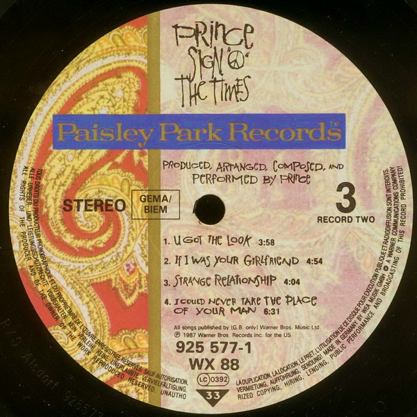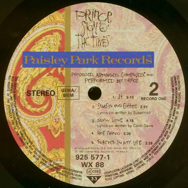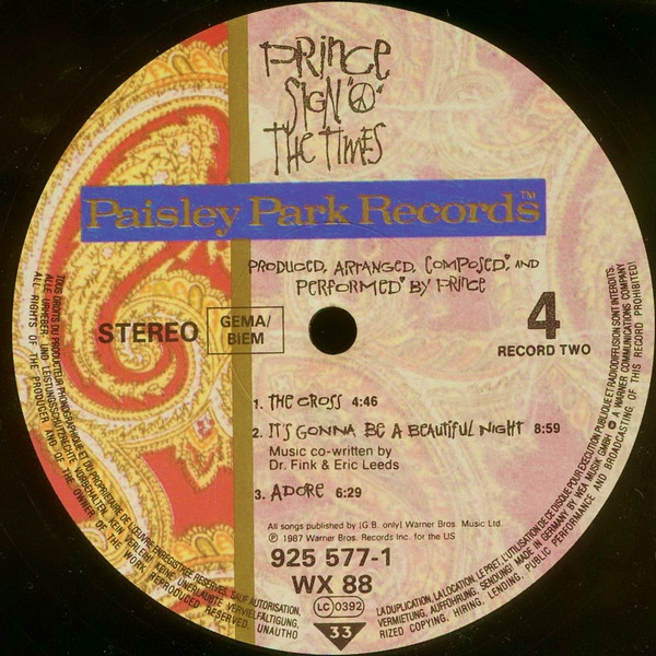Label: Paisley Park - Cat#: WX 88